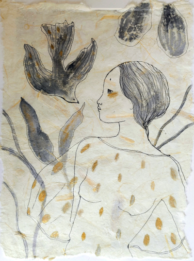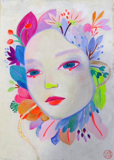 Inspired by dreams, femininity, wellness and nature, Idoia Izumi creates works that blend figuration and abstraction, incorporating drawings, paintings, sculptures, and masks.