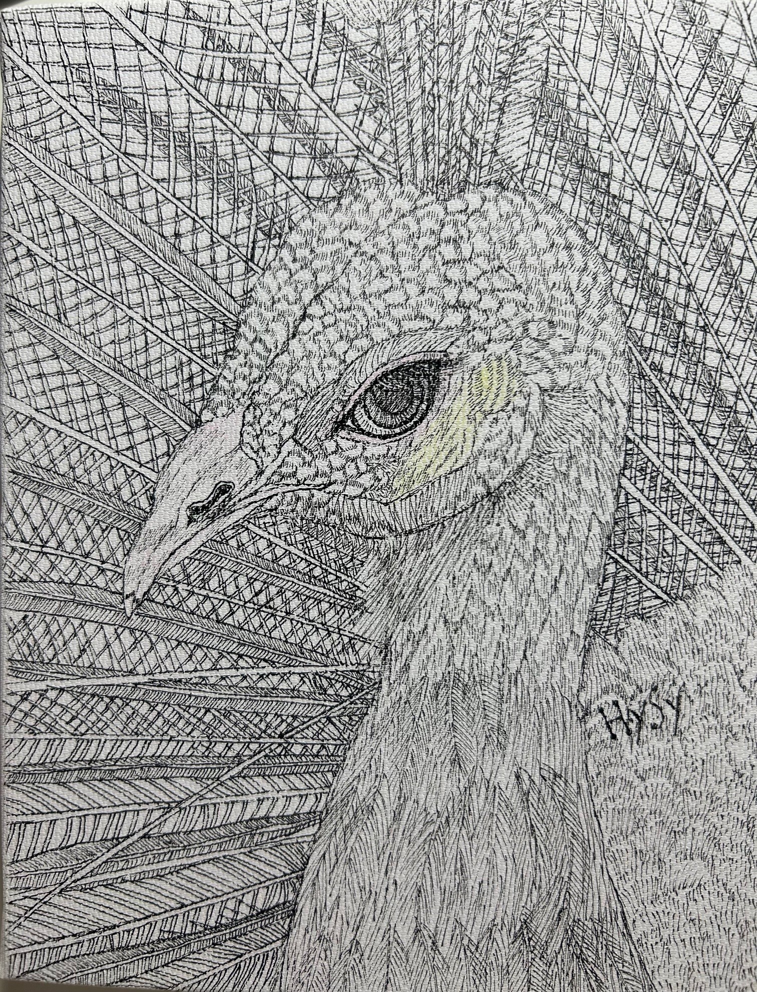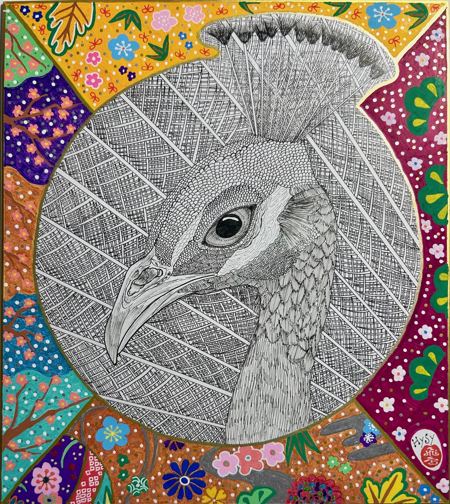 孔雀とフクロウの絵が1番自分らしさを表現出来ていると感じます。細かい描き込みが必要なため、存分に羽根の美しさを表現できるからです。