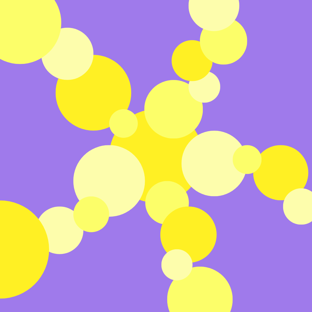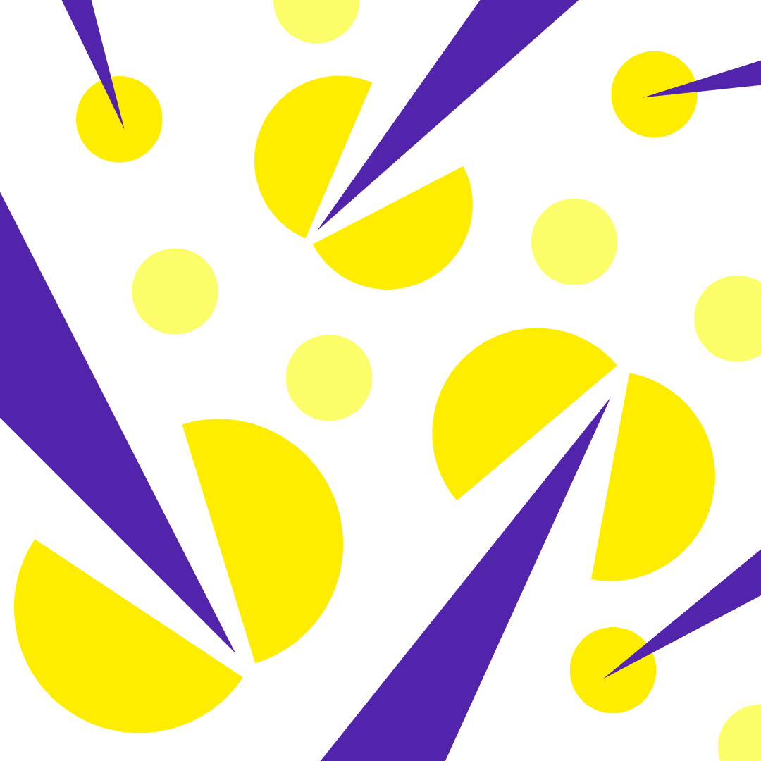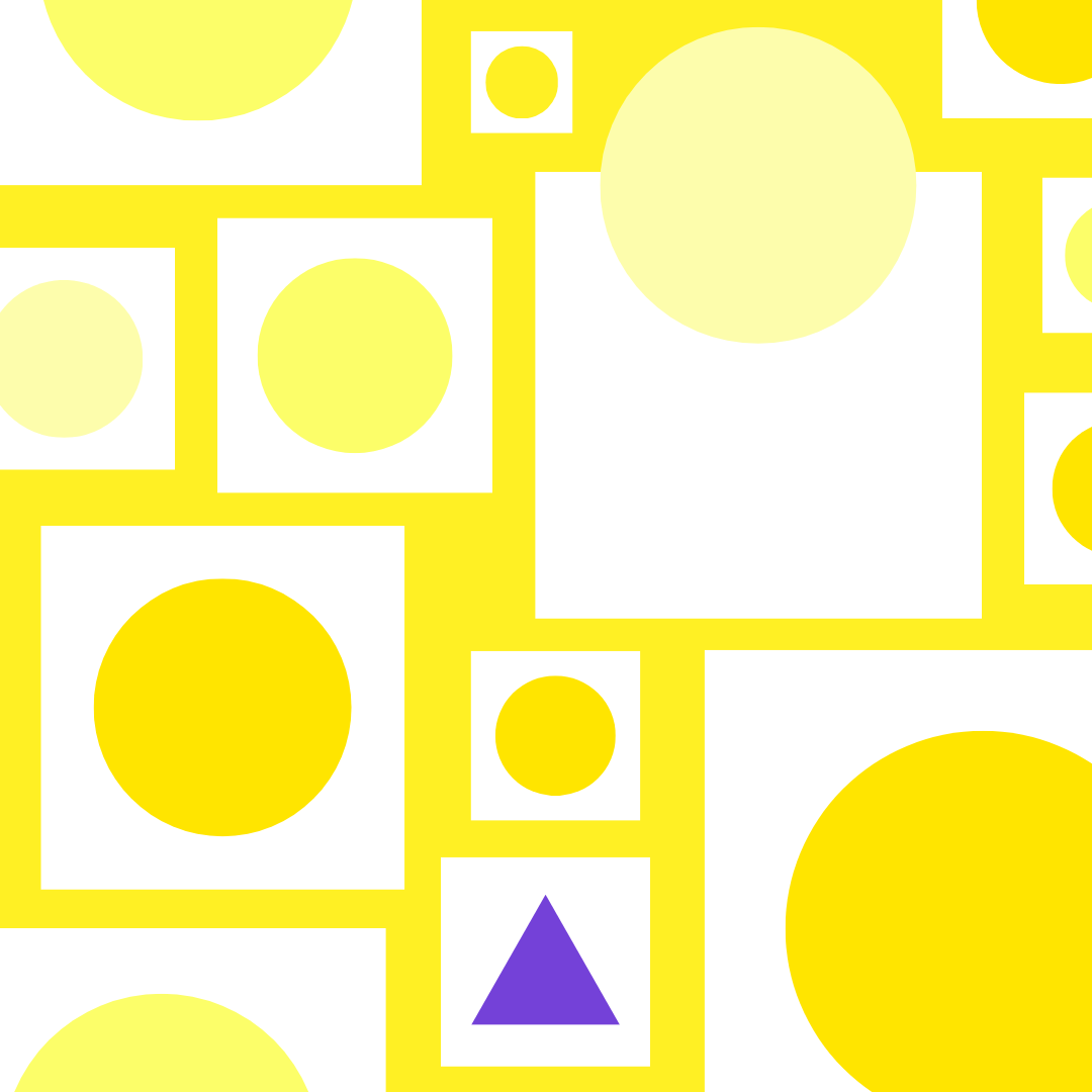 shimshiroが日々の暮らしの中でふと感じた「ポジティブな感情」「ネガティブな感情」を黄色と紫色、そして丸・三角・四角などの図形で表現したアート作品。