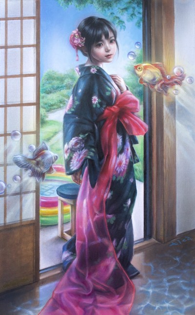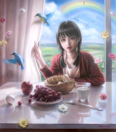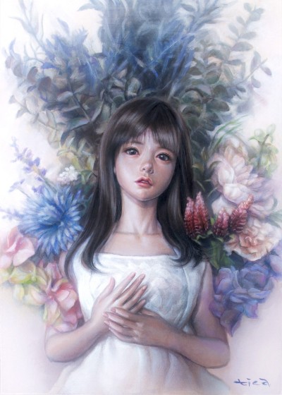 アルキド樹脂絵具等で、少女をモチーフに幻想的で心温まるような絵を描きたいと思います。
