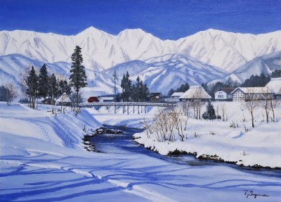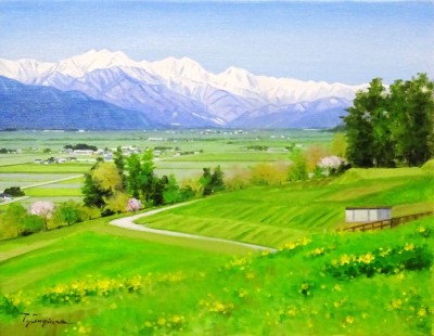 30代半ばに市民講座で絵画を習い始めて37年間、油彩で主に風景画を描いています。大好きな長野県の安曇野から白馬村地方の風景、私の故郷でもある愛知県東三河地方の風景、そして地元である静岡県浜名湖の風景などを題材として描いています。何気ない日常の風景作品を見て心安らかになってもらえたら嬉しいです。