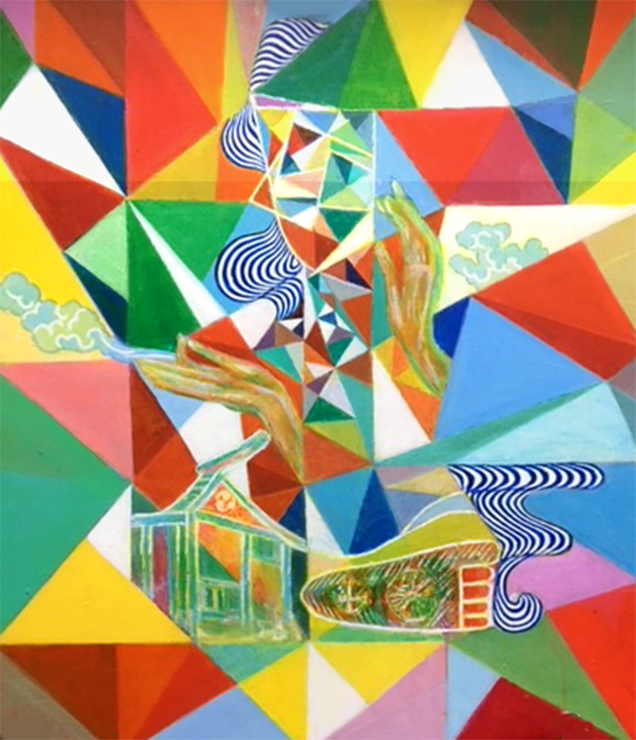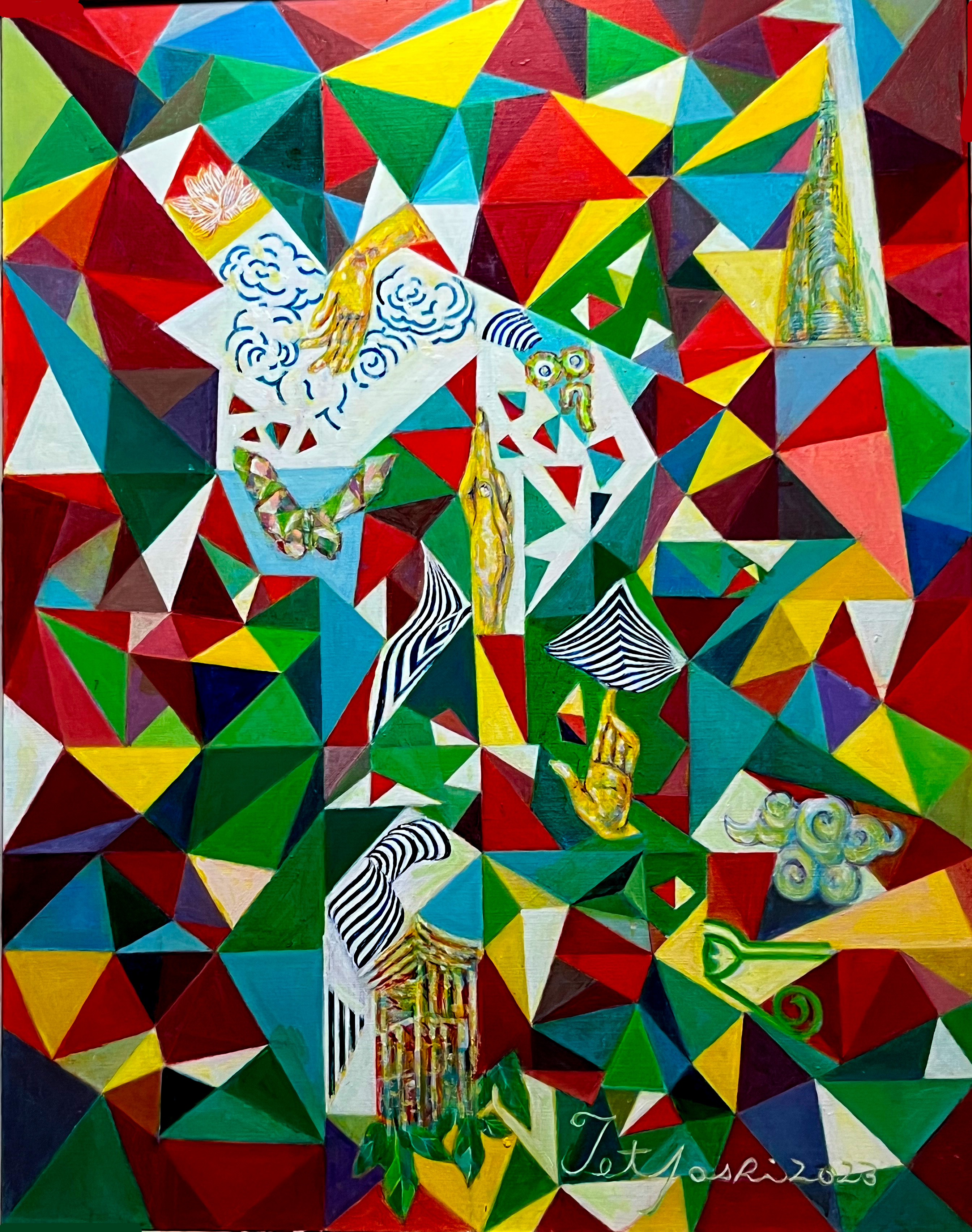 デザイナーとしての豊かなキャリアを経て、純粋美術の道へ。束縛から解放された表現は、煩悩と向き合いながら成長し続ける人間の心そのものを映し出す。幾何学的形態と色彩が生み出す万華鏡のような世界は、見る者の精神状態や視点によって無限の表情を見せる。今もなお「表現に終わりが見えない」と語る吉岡徹氏。その探求心と創造への情熱は衰えることなく、今後さらなる深化を遂げていくだろう。これからの活躍に大いに期待したい。