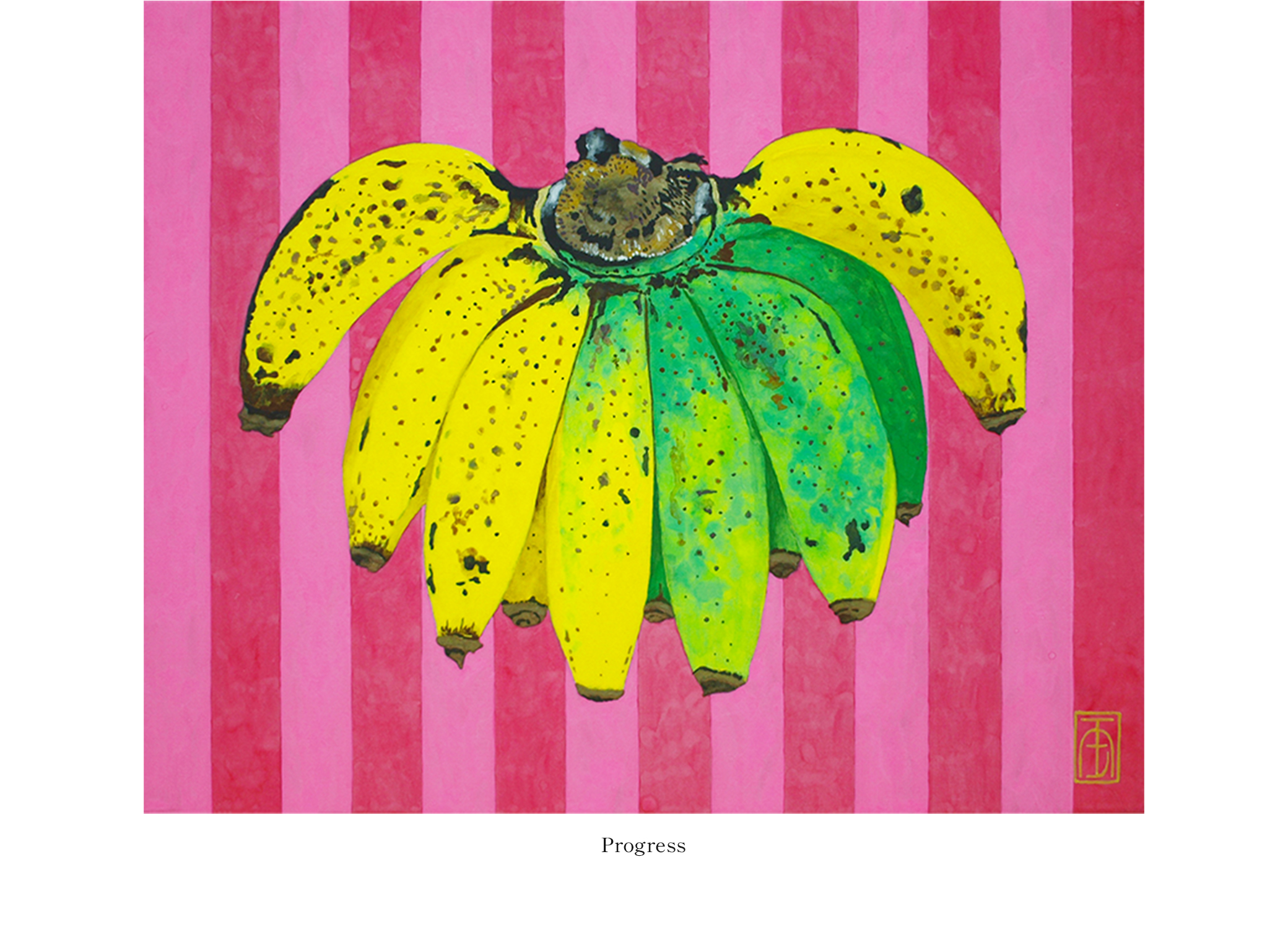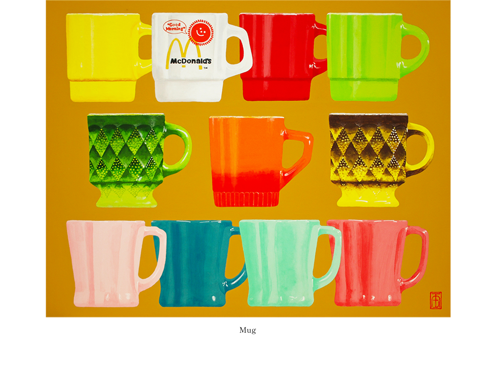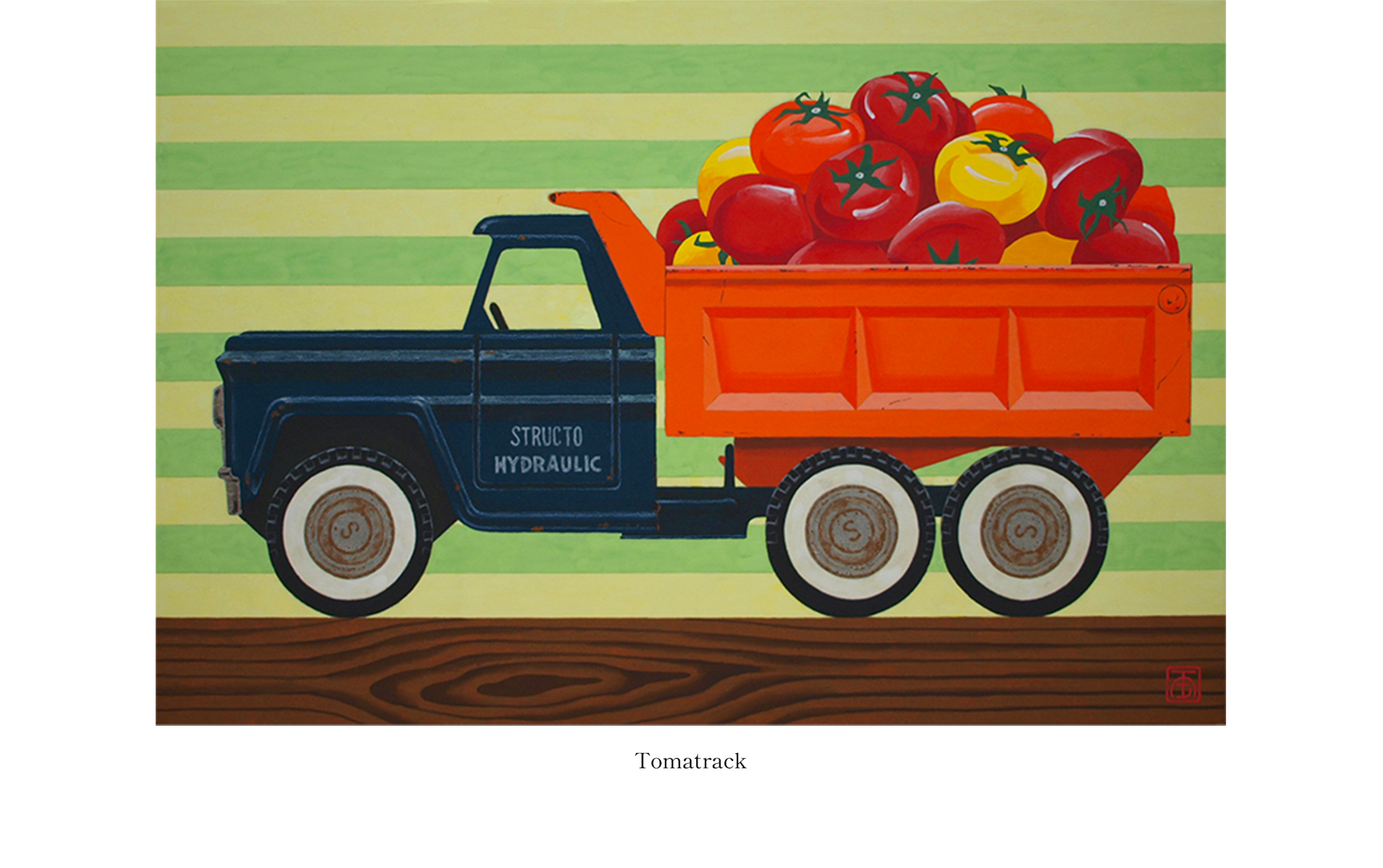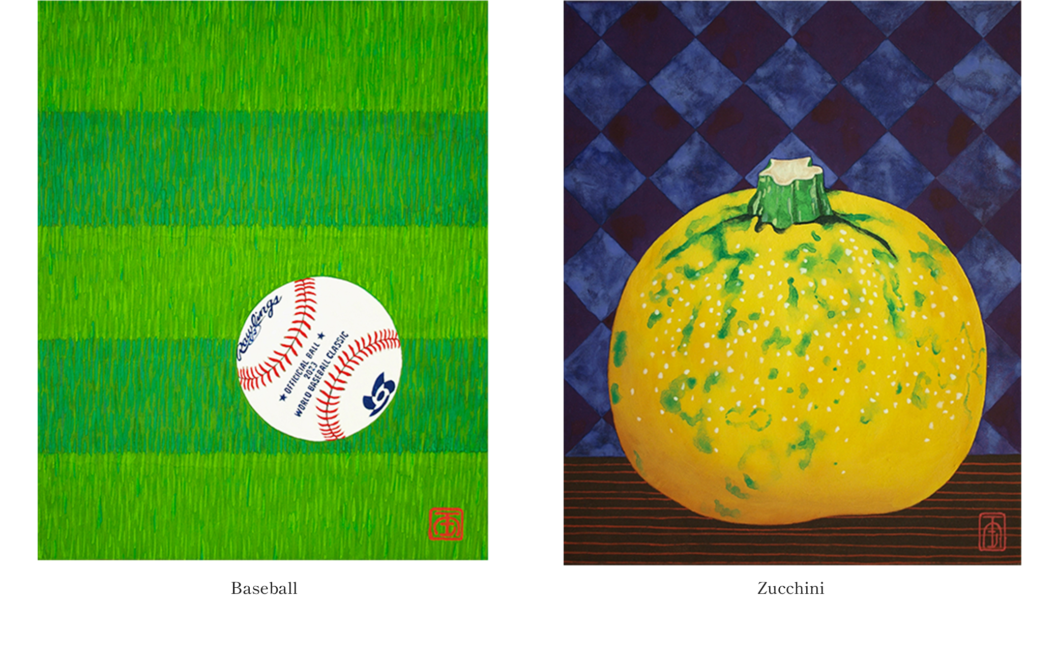 日本画の伝統的技法を基盤としながら、ポップアートの軽やかさと、どこかノスタルジックなレトロアメリカンの空気感を重ね合わせ、独自の画面世界を構築する画家・福本正。野菜、果物やおもちゃ等、琴線に触れたモチーフを洗練された色彩と構図によって現代的で洒脱なイメージへと昇華させている。 「衣・食・住・遊」という身近なテーマを一貫して扱いながらも、その表現の根底には東京藝術大学で磨き上げた確かな日本画の技術がある。支持体には雲肌麻紙(くもはだまし)を用い、岩絵具、墨、箔といった伝統的画材で、「たらし込み」や「ぼかし」といった技法を丁寧に重ねる。その揺るぎない伝統への敬意が、軽快なモチーフ表現に確かな格調と奥行きをもたらしている。 一方で、画面構成や色彩感覚には、現代の視覚文化への鋭い感受性が見て取れる。鮮烈な色彩で描かれる果物の静物や、古いおもちゃを描いた画風は1960年代アメリカの広告やグラフィックデザインを彷彿させ、この絶妙な和洋のバランスこそが福本正の真骨頂と言えるだろう。 1996年の初個展以降、百貨店やギャラリーでの発表を重ね、また、東京・京橋にあるフレンチレストラン「シェ・イノ」、パティスリー「イデミスギノ」、船橋の「アントレ」他、飲食店に多数コレクション展示されている。デザイン性をかわれイデミスギノ、南仏のパティスリーBIOMOMO HASHIMOTO他パッケージデザインも手がける。2018年には日本酒・獺祭デザインアワードで優秀賞も受賞している。その他おもちゃコレクターとして知られる北原照久氏のコレクション展に抜擢されるなど、ジャンルを越えてその表現や活動は広がりを見せている。伝統と現代性を軽やかに結びつけ、日本画の可能性を更新し続ける存在として、今後ますます注目を集める画家である。 《展覧会のお知らせ》 「 Xmas Gift展 三條弘敬コレクション 」 出品作家 : 河嶋淳司、千住博、森山知己、福本正、福井江太郎 ※福本氏の作品は9点展示予定 会期 : 2025年12月12日(金)~24日(水) 10:00~18:00 会場 : 永井画廊(東京都中央区銀座8-6-25) ※日曜休廊、最終日16:00まで
