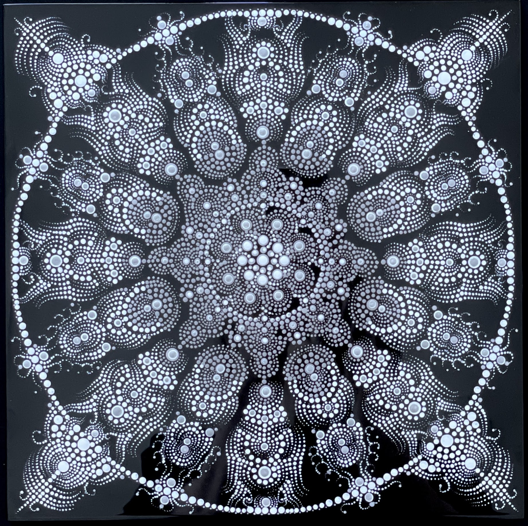 現在、野崎は静かな住宅街のカフェでドットアート講座を開催している。「宇宙を描いたような美しい作品を作り上げることができる」と謳うその教室では、専用のペンやキャンバスを使って無心に点を打つ豊かな時間を提供している。1つ1つの点が集まって曼荼羅のような美しい作品になるそのプロセスは、まさに人生の縮図でもある。