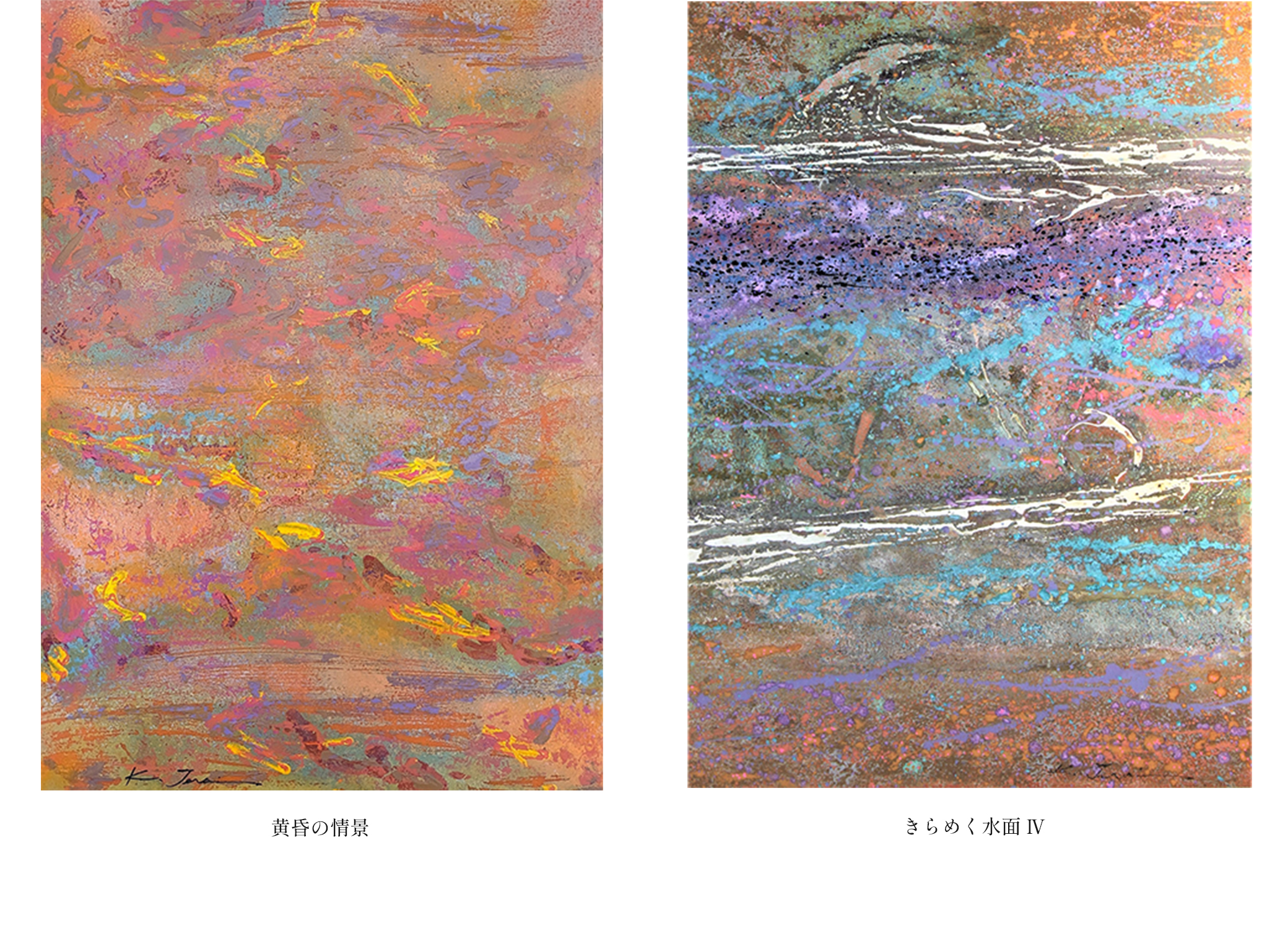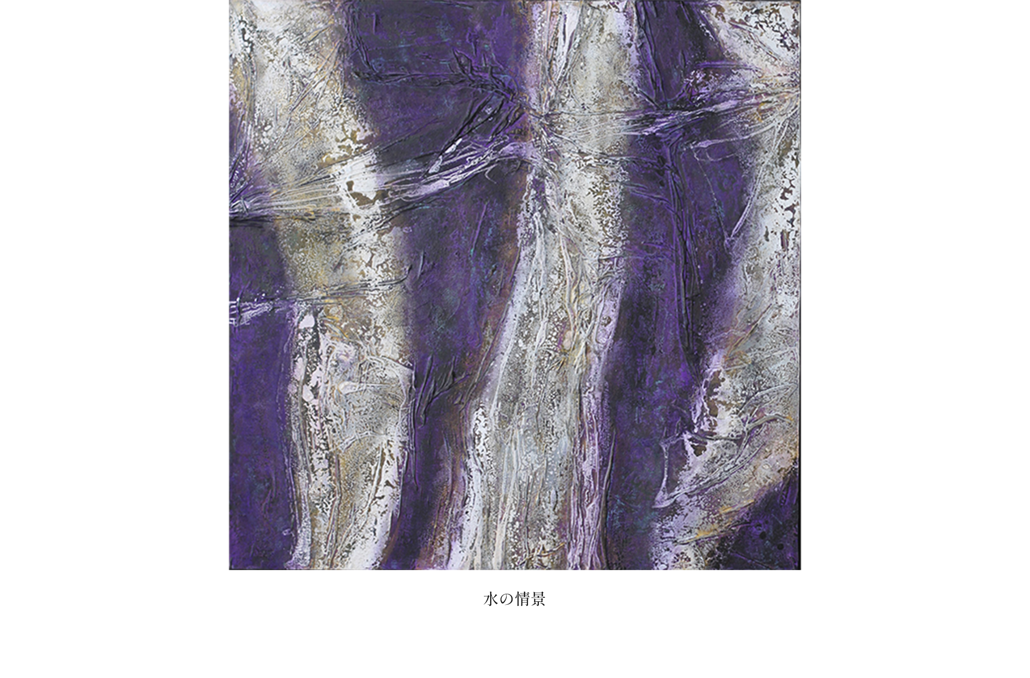 AIやデジタルアートが隆盛を極める現代において、厚手の和紙、洋紙を主な支持体としここ数年では氣をテーマに墨と黒の絵の具を使った作品の他、透明なアクリル板の表と裏の両面から描いた全く新しい表現の作品を制作している画家、寺井浩一。彼の作品は、観る者の心の奥深くへと静かに染み渡り、忘れかけていた内なる感覚を呼び覚ますような、不思議な力に満ちている。1952年、豊かな自然に抱かれた北海道に生を受けた彼は、日本最高峰の芸術教育機関である東京藝術大学で油画を専攻。当初は西欧の古典絵画に関心を寄せ、伝統的な油彩の技術を深く学んだ。しかし、そのアカデミックな道程は、やがて彼を独自の抽象表現へと導いていく。その転換の根底にあったのは、「人間が本来持っている感情や感覚を大切にした作品制作を目指したい」という、作家としての純粋で強い欲求であった。 寺井が主題とするのは、大地、大気、樹木、水、光、音といった、私たちを取り巻く自然界の様々な事象だ。しかし彼の目的は、目に見える風景を単に写し取ることではない。自身が対象から受けた新鮮な驚きや感動、あるいは畏敬の念を、より純粋な形へと昇華させ、観る者の心の琴線に直接触れようと試みる。それは、描かれたものに生命を宿らせようとする、真摯な祈りにも似た行為といえるだろう。その表現方法はひとつの型に留まらない。例えば、代表作の一つである≪Waterfall(瀧)≫では、岩肌の質感と激しく流れ落ちる水の表情を際立たせるために、布を何層にも張り込むコラージュ技法を用いる。一方で≪水の精≫では、独特の肌合いを持つ和紙の可能性を追求し、雪や氷、清冽な湧水が織りなす張り詰めた世界を創出した。慣れや惰性を嫌い、常に主題と真摯に向き合うことで、最もふさわしい表現を探求し続ける。その確かな技術に裏打ちされた探求心こそが、彼の芸術を常に新鮮なものにしているのだ。彼の作品には、デジタルでは再現し得ない、物質的な絵具や和紙、布が持つ独特のあたたかみや、時に冷静ささえ感じさせる静謐な感情が宿っている。 情報が溢れる喧騒の時代だからこそ、寺井浩一が描く深く静かな世界は、私たちに自身と向き合うための穏やかな時間を与えてくれる。今後も彼は、私たちに新たなヴィジョンを見せ続けてくれるに違いない。