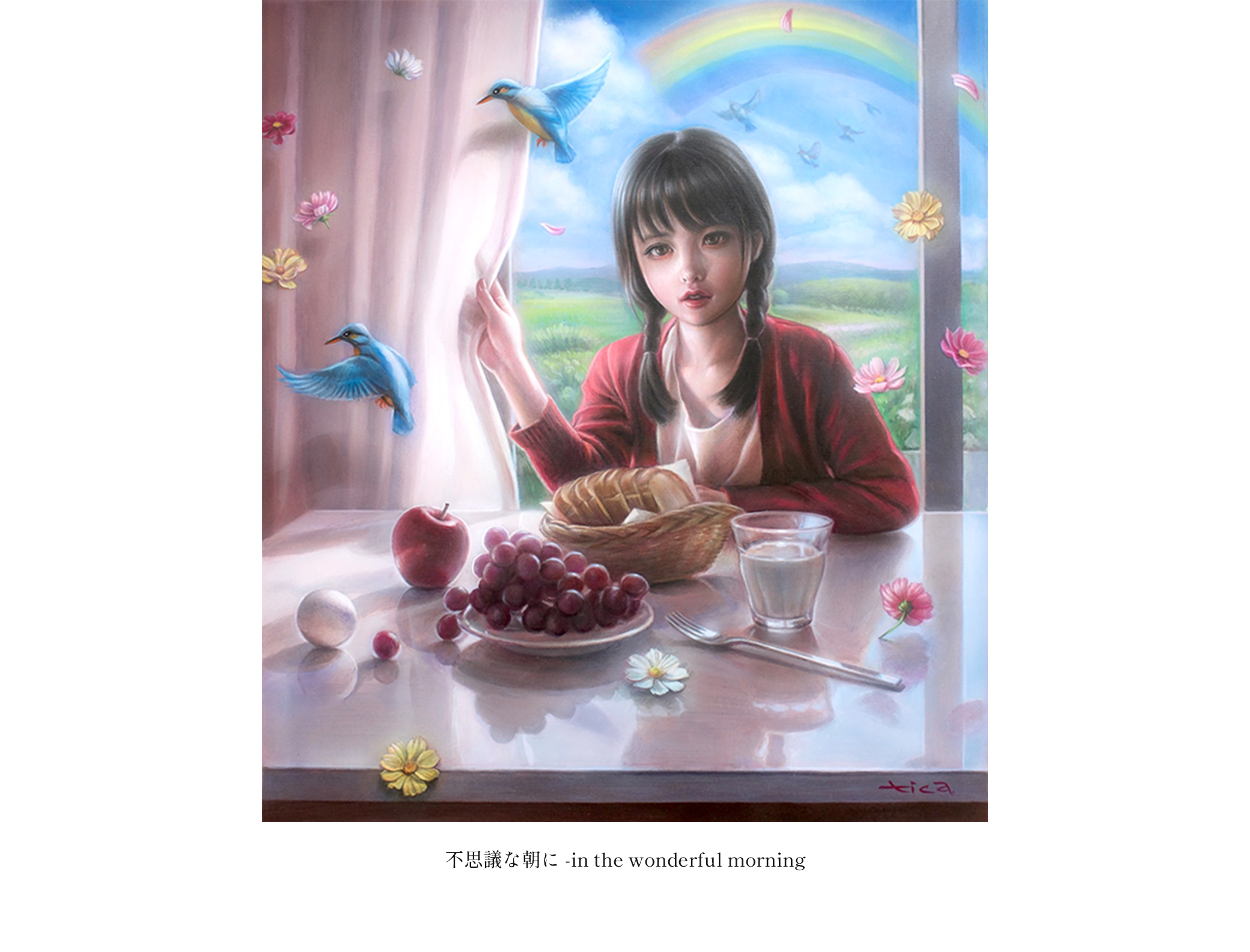 神奈川県在住の画家・外田千賀氏が描くのは、「子どもの愛らしさと大人の女性の雅量を持つ少女」をモチーフにした、温かさや優しさ、懐かしさを感じる幻想的な絵画である。 子どもの頃から絵本が好きで、10代の頃は幻想画家である七戸優氏や、アンドリュー・ワイエス氏などの画家に影響を受けた。特に七戸優氏が描く暗鬱で謎めいた世界観には心酔し、当時の自身の作風にも影響を与えたという。 幼いころから抱いていた、漫画家やイラストレーターになりたいという夢はやがて、美大受験を決心するほどに膨らみ、日本における美術系大学の最高峰である東京藝術大学に入学。学部時代は油絵と版画を、大学院時代では美術解剖学を専攻した。その過程で観音菩薩やミュシャの優美な女性像に惹かれたこともあり、“少女”をテーマに描くようになったという。在学生時代から積極的に個展の開催を行ったことで自作に共感してくれる人の存在も実感し、いつしか画家として絵を描くことがライフワークへとなっていった。 外田氏が制作の際に大切にしていることは、“見る人がホッと安らげる、柔らかい色彩と淡い光” であるという。彼女が描く、儚さやあどけなさを感じる少女たちは、自身のお気に入りのドールの造形や、好きな女優・モデルを参考にしながら、気分や作品の雰囲気に合わせて想像で描いている。しかし、想像で生み出しているとはいえ、現実離れした作品にするのではなく、慈しみと悲しみを湛えた人間味のある表情を出すことも目指している。また、背景にもこだわりを持っており、「作品の背景は、少女のいる世界を演出する役割」と外田氏は語り、細部より光と影で雰囲気を表現することに注力しているという。その他、絵具をアルキド樹脂絵具に変えてから発色が鮮やかになったとのことで、描く作品の表現が、より明るく穏やかになったそう。 外田氏は現在、海の近くのアトリエで創作活動を行っている。絶景を眺めながらの朝夕の散歩のほか、海が見えるアトリエで描くことは、心身のリフレッシュになるだけでなく、重要なインスピレーション源ともなっているとのこと。すでに2026年夏の個展も決まっており、さらに注目度が高まる外田氏の活動に目が離せない。