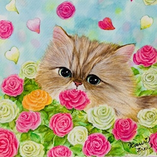 年月を経て、ある時一緒に暮らしていた猫を描き、インスタグラムに発表したことがきっかけで、いろいろな猫を水彩画で描くようになりました。