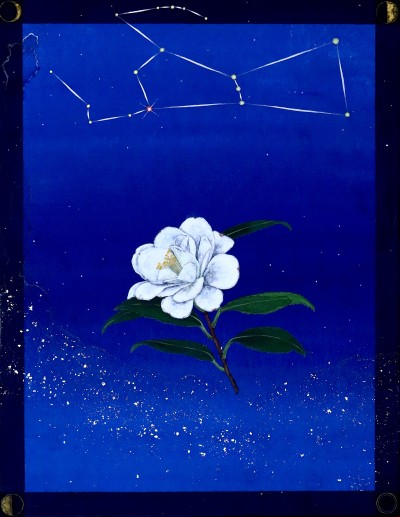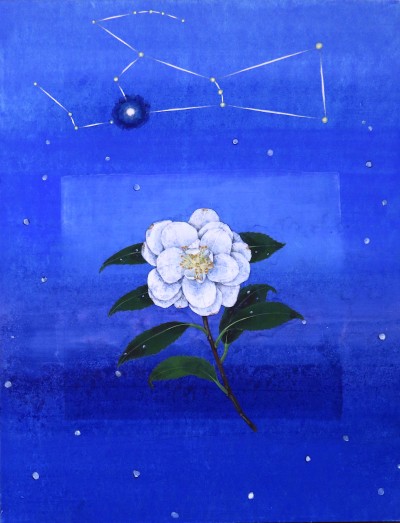 私は花や星に強い憧れがあり、自分との距離を近づけたいという思いをもっています。花や星はただそこに在るだけで神秘さを感じ、絵として残したいという思いに駆られます。