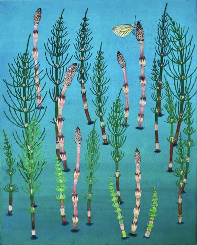 美大では油絵を専攻していましたが、ある時、授業の一貫で水干絵の具を使いました。水干絵の具独特の色の美しさや、さらりとした質感にすっかり魅了されてしまいました。以後、油絵を描く傍ら水干絵の具を使用した作品も描き始めました。粒子の細かい水干絵の具を使うことで対象をより繊細に表現できることが一番の魅力です。