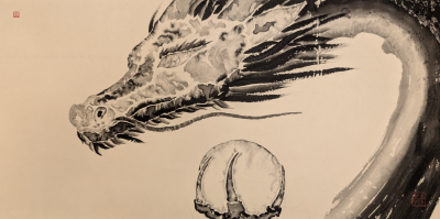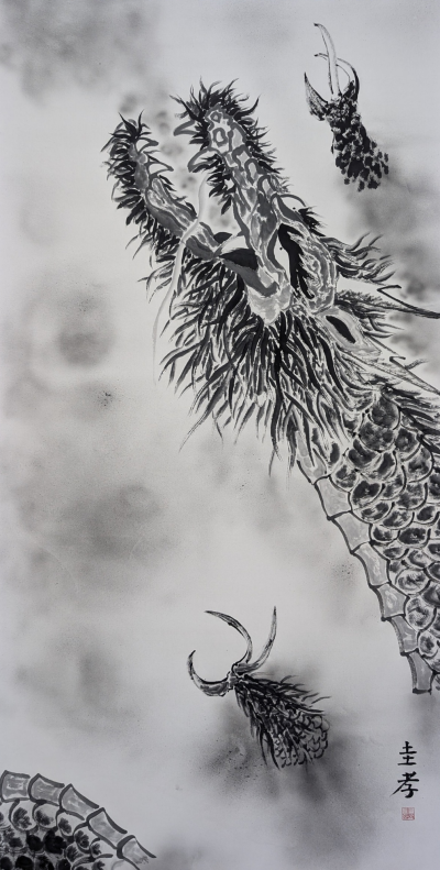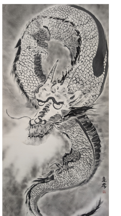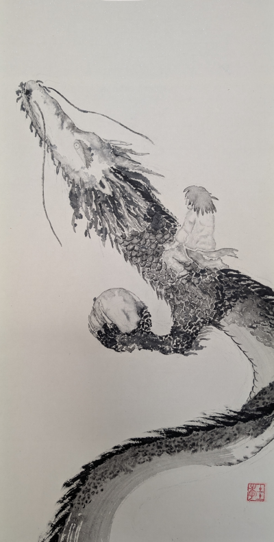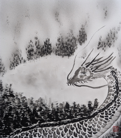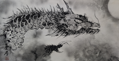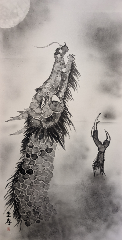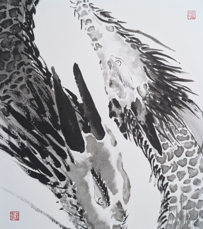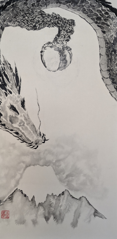 私は墨で龍を描いています。