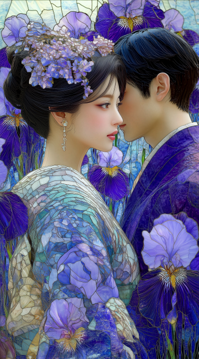 ネオ・ジャポネスク – うれしき知らせの花菖蒲 – ネオ・モザイック・ステンドグラス