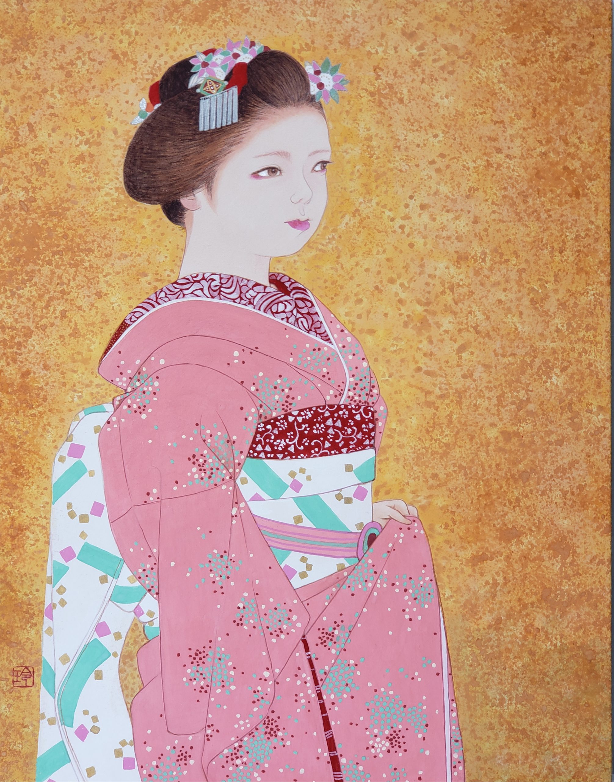 特に意識しているわけではないのですが、振り返ってみると人物画は楽しんで描いていますね。特に舞妓さんなどは18、19歳の少女から大人へ変貌していく時期で、その頃特有の美しさ・可愛らしさは唯一無二です。