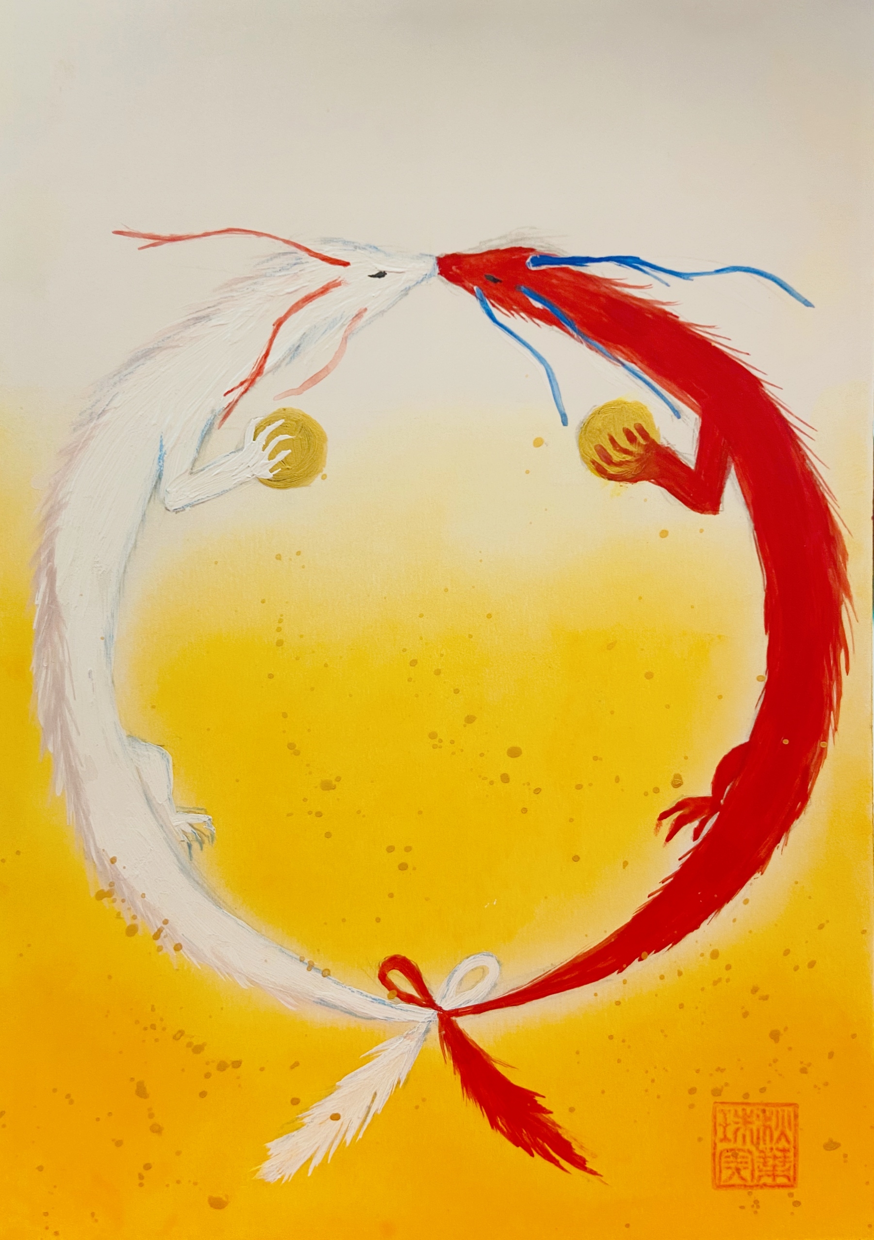 また、2019年のお正月に福島の平和を願ってライブペイントで描いた、全長8メートルの白龍の作品は、小田鹿島神社の拝殿に奉納され、神様として今後何百年にもわたって残っていくことになりました。数百年後にこの場所を訪れる方々にも、恥じることなく紹介していただける作品を描いた画家であり続けたいです。そう思うと、自然と背筋が伸びるような気持ちになりますし、これからの制作や活動に対する覚悟もより強くなりました。