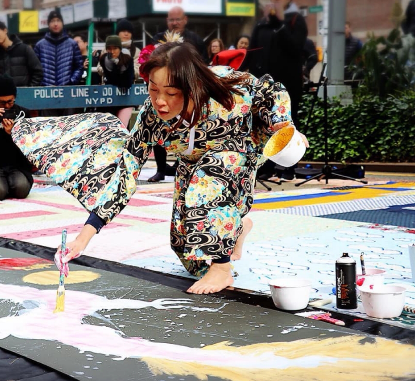福島の復興イベントでライブペイントを行うことになり、着物を着て、音楽に合わせながら、90センチ×10メートルの縦長の紙に、復興の祈りを込めた不死鳥を描きました。すると思っていたよりも楽しくやりがいがありました。そうしてライブペイントの活動を始め、2017年には、ニューヨークでパフォーマンスをする機会も得ました。それまでは不死鳥を描いてきましたが、その頃の福島は、つらい経験をしたからこそ多くの人に希望を与えられる存在になっていると考えました。そこで、不死鳥ではなく、縁起の良い龍を描くことにしました。それ以来、国内外で龍を描いてきました。
