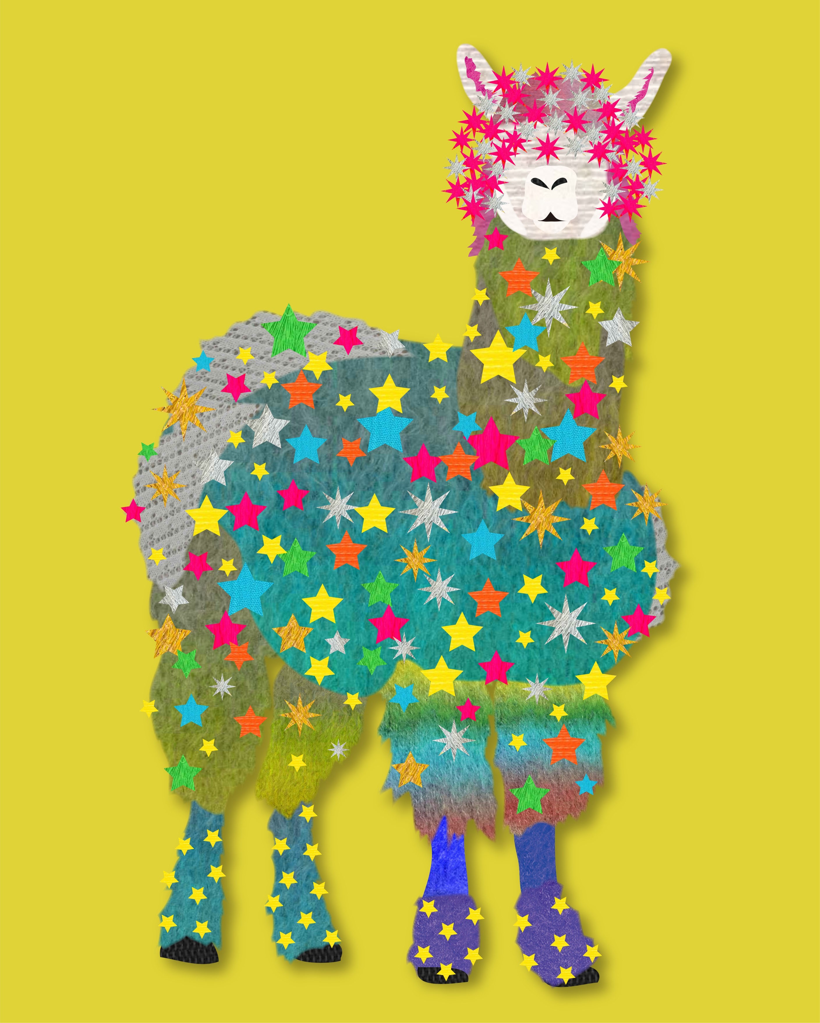 『アルパカ』です。この作品はアルパカの毛刈りのニュースを見てそこから着想を得ました。おしゃれ大好きなファッショニスタのアルパカという設定で作り出したのですが、制作を進めるにつれてどんどんパワーアップしていきました。星を付けたり、色使いを工夫したりと、作るのが楽しすぎて、完成させないといけないのにまだ完成したくないという矛盾が生まれたエピソードがあります。この作品には、ニットという素材への愛情と、遊び心、そして楽しみながら制作する私自身の姿勢がすべて詰まっていると感じています。自由な発想で素材の魅力を引き出し、見る人を笑顔にできる作品。それが私らしさだと思いますし、これからも大切にしていきたい部分です。