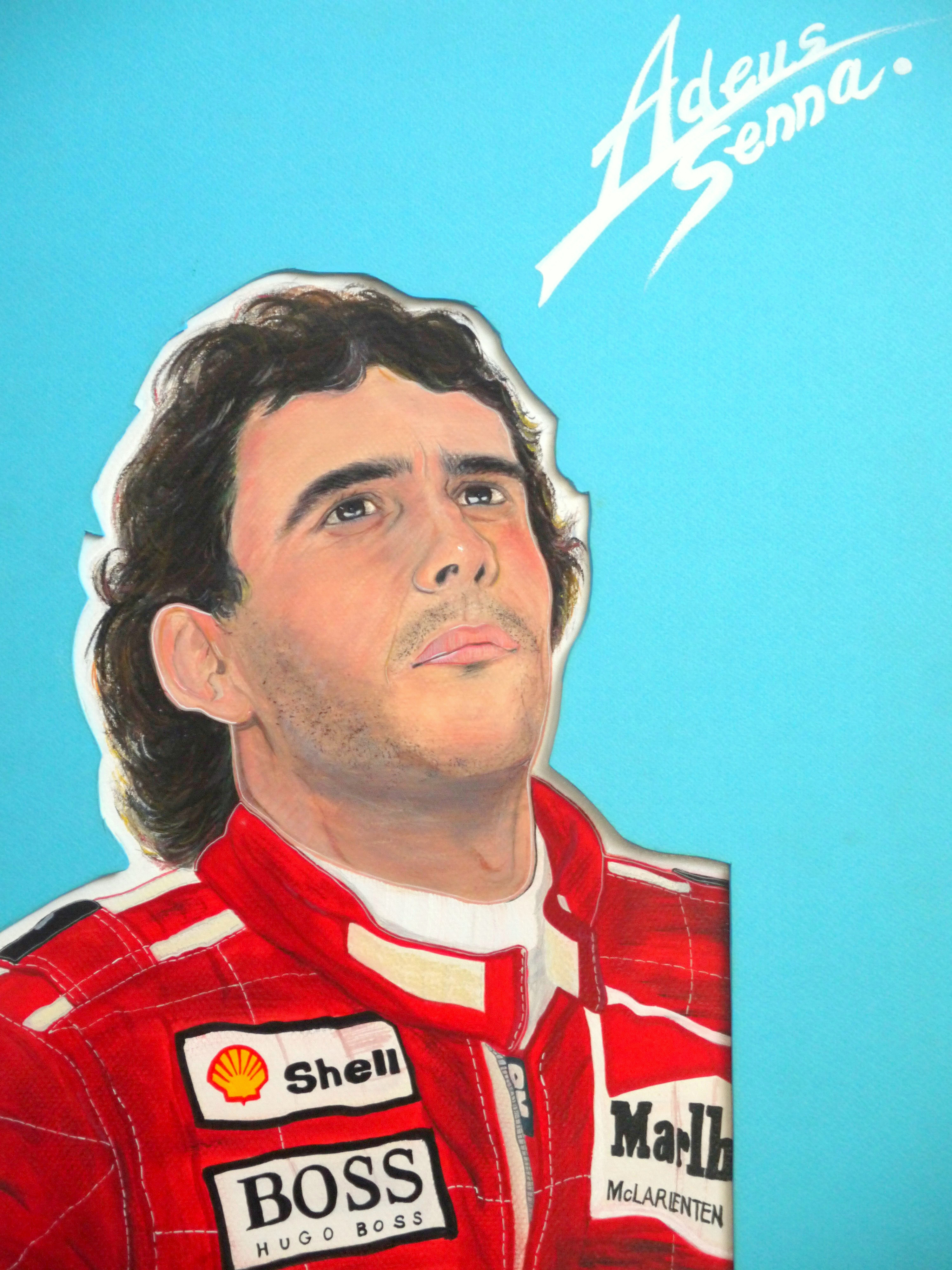 絵を再開するきっかけは、鉄冷えの時代が続いていた当時、私は会社に残るか、転職すべきか悩んでいました。そんな中でショッキングなニュースが届きました。それはファンだった伝説のF1レーサーのアイルトン・セナ選手の事故死でした。自分を取り戻した私が思ったのは、セナ選手の絵を描きたいということでした。