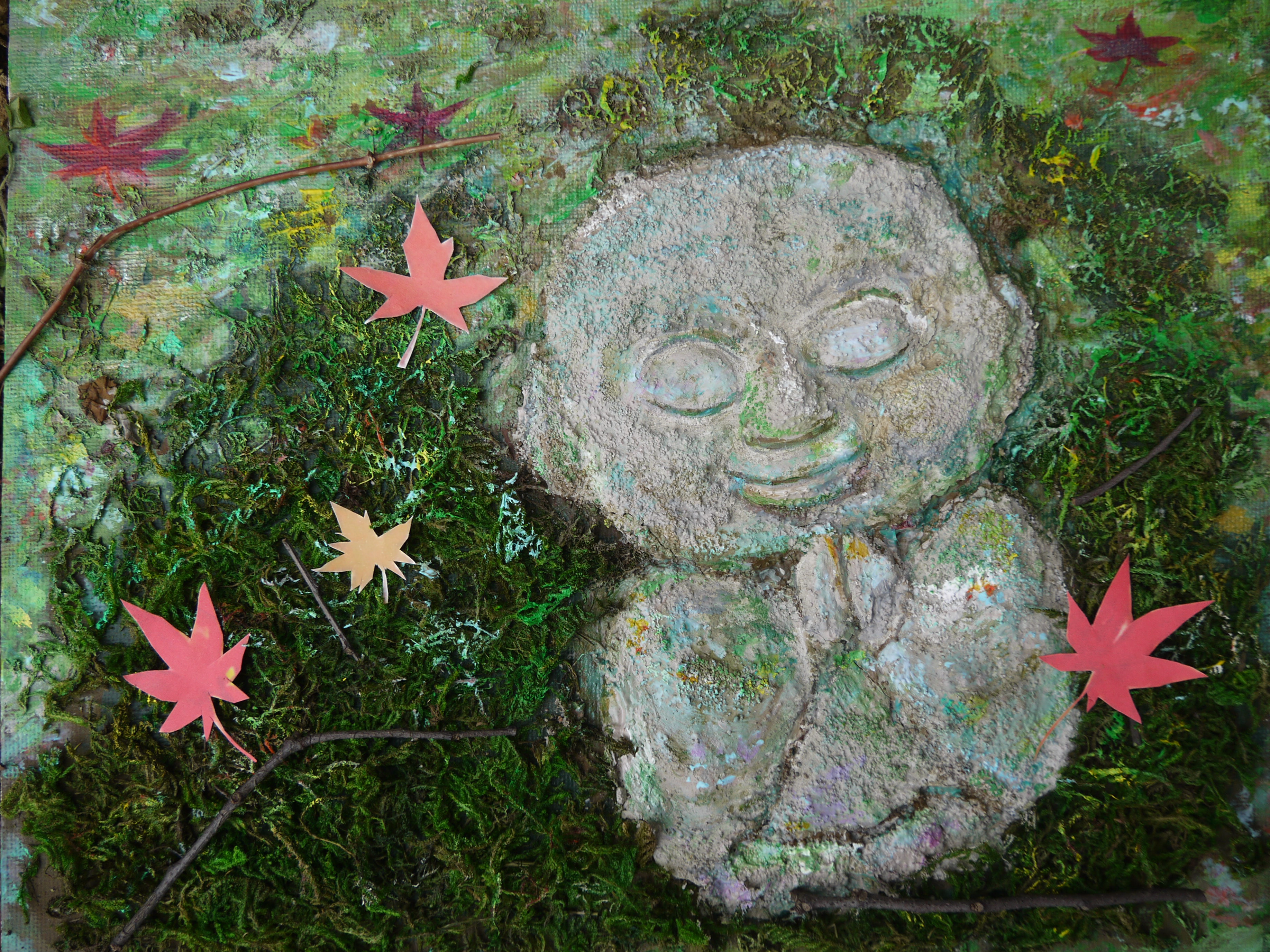 日常の何気ない風景や、自分が癒される絵を型にとらわれずに書き続けていきたいと思っています。日常風景のなかでも特に好きなのはお地蔵さんです。普段はあまり意識しないものではあるけれど、日本の風景に溶け込んでいます。