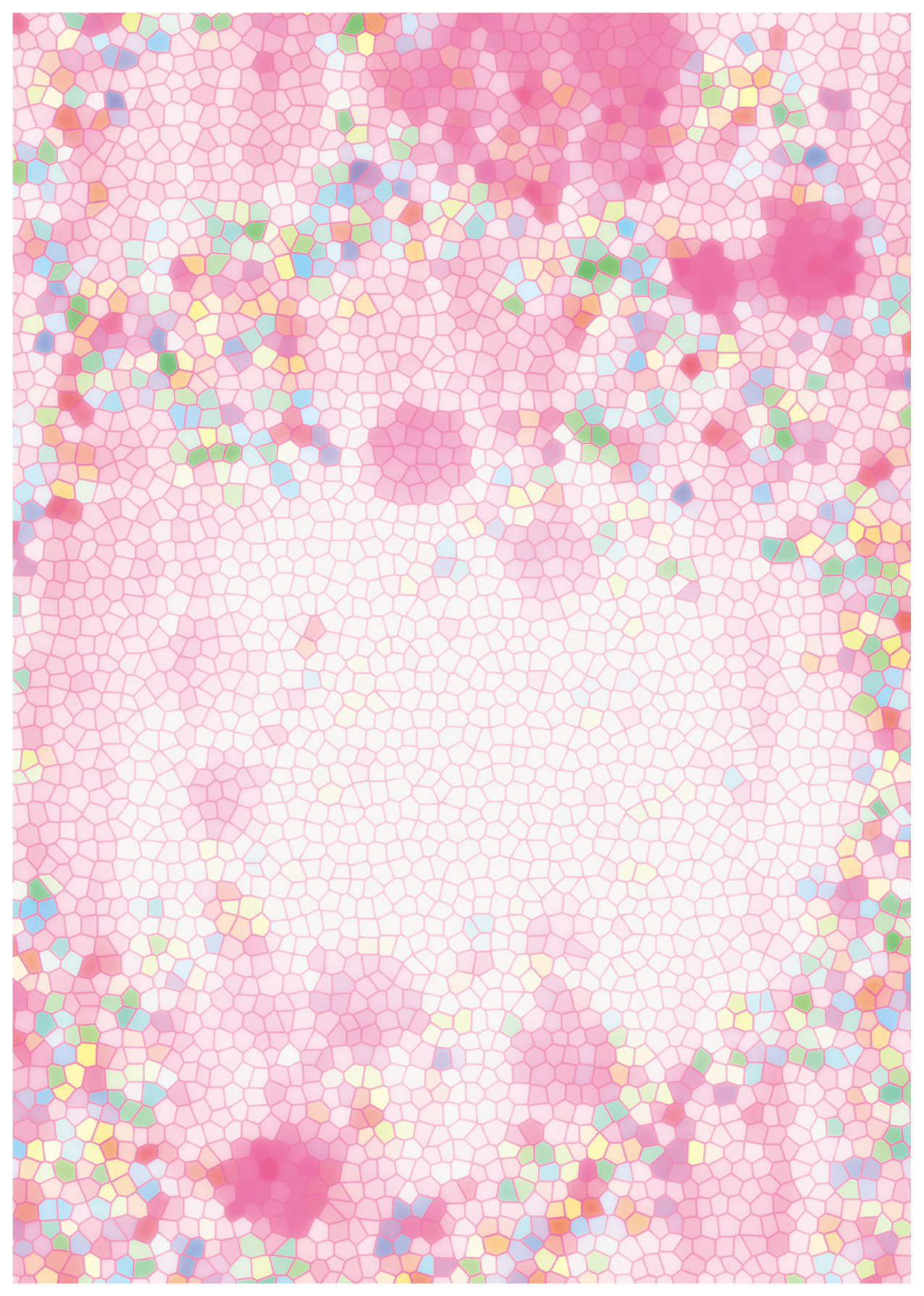 また、現在はデジタルでの制作がメインですが、いかにもデジタルらしい蛍光の発色は避け、アナログに近い色合いを目指していたり、感覚的に心地よい色の配置を追求するようにしています。