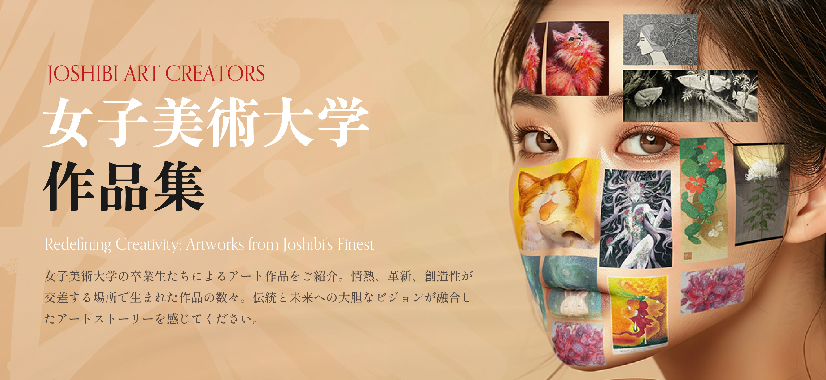 女子美術大学は、1900年の創立以来、「女性が美術を学ぶ専門機関」のパイオニアとして、日本の美術界を牽引し続けてきた東京五美術大学の一角です。日本画の巨匠である片岡球子をはじめ、数多くの著名な画家やクリエイターを輩出し、その歴史は日本における女性の美術教育史そのものと言えるでしょう。女性特有の視点や感性を尊重する教育を実践していることもあり、女子美術大学の在校生・卒業生が作り出す表現は、社会や日常に潜む小さな機微を捉えた『繊細さ』と、既存の概念を打ち破る力強い『創造性』を併せ持ち、見る者に深い共感と気づきを与えてくれるものばかりです。 本特集では、日本の美術教育の歴史を築き、現代においてもなお新しい表現を追求し続ける女子美術大学の在学生・卒業生に焦点を当てています。多様な分野で個性を輝かせる彼女たちの、瑞々しく、そして力強い作品の数々をご覧ください。