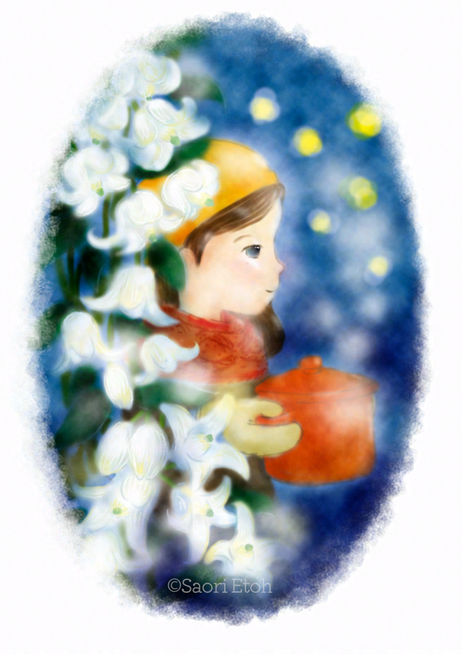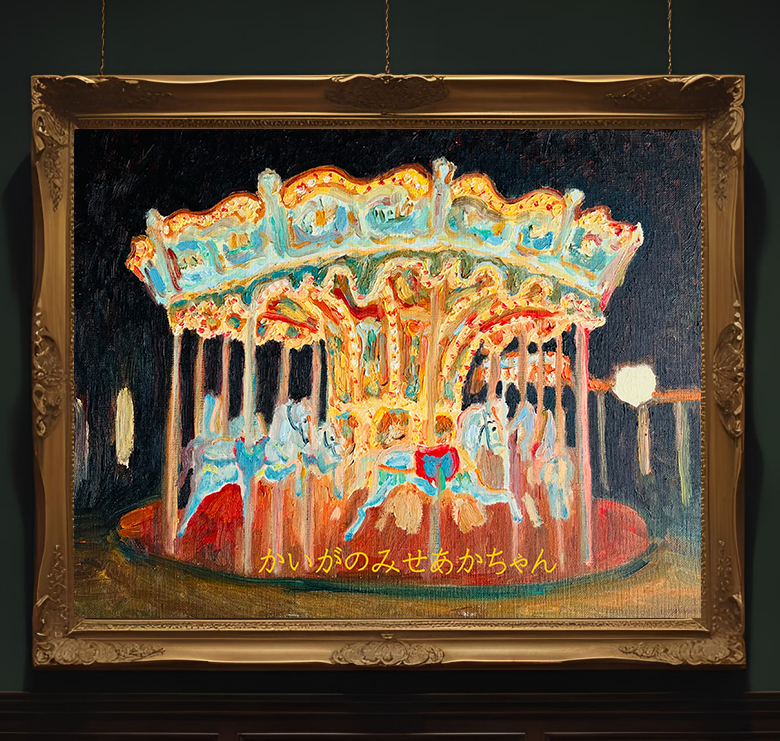 32×41㎝「夜のメリーゴーランド5」原画・油彩画・F6 フレーム無し