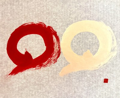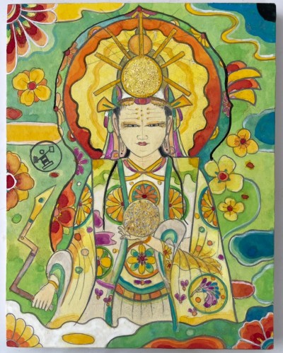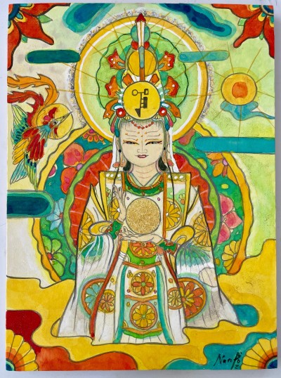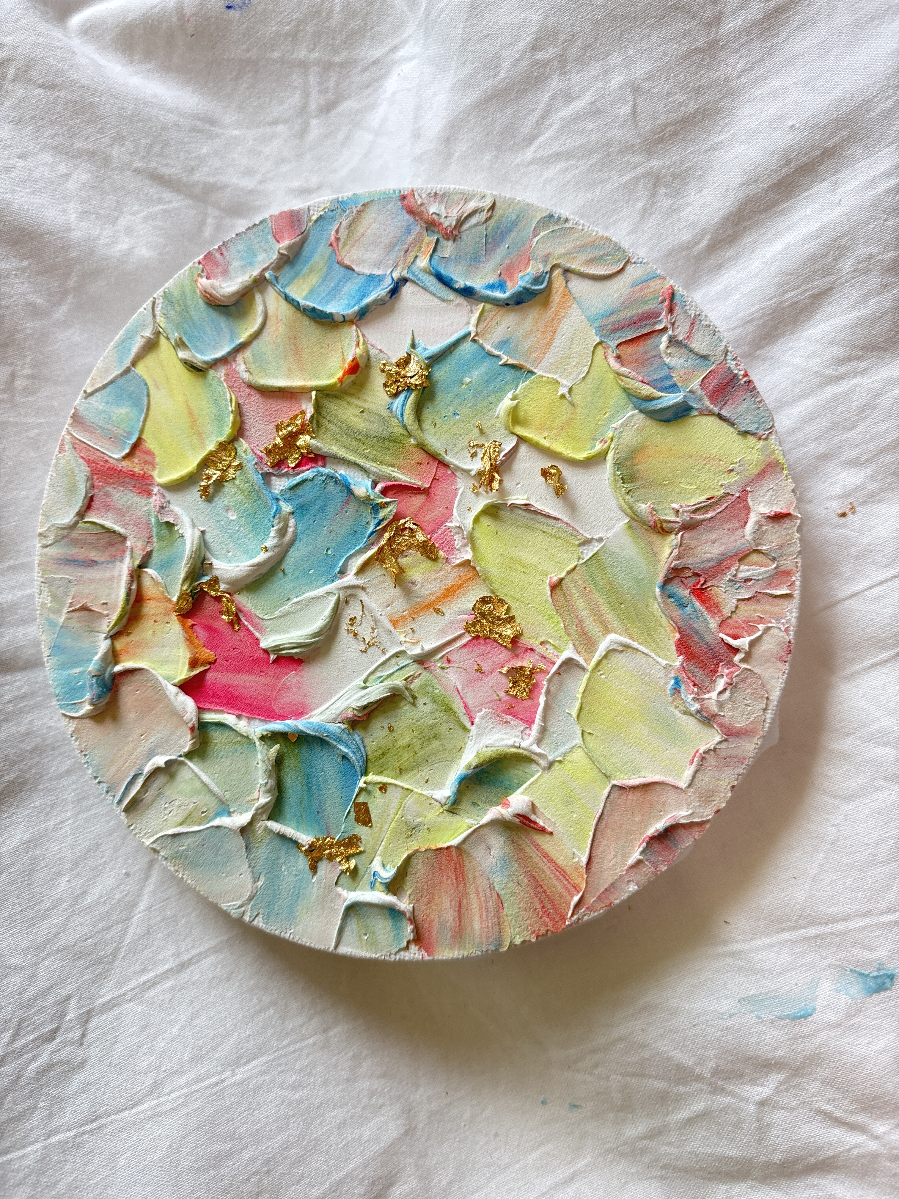 直径25㎝「朝の空 2025-2」油彩・絵画・原画・丸形・アートパネル