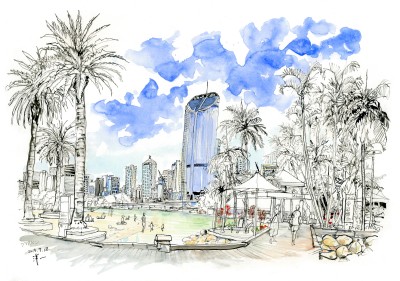 ピースボート寄港地の風景スケッチシリーズ-ブリスベン、サウスバンクパークランズ