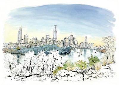ピースボート寄港地の風景スケッチシリーズ-ニューヨーク、セントラルパーク・レイクの風景