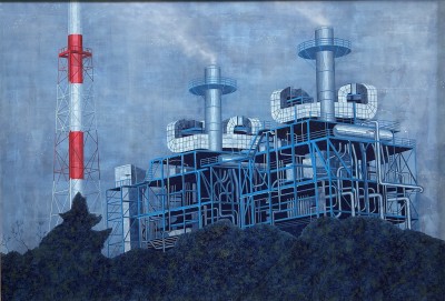 曇天下の工場