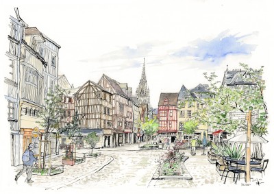 ピースボート寄港地の風景スケッチシリーズ-フランス・ルーアンの街角