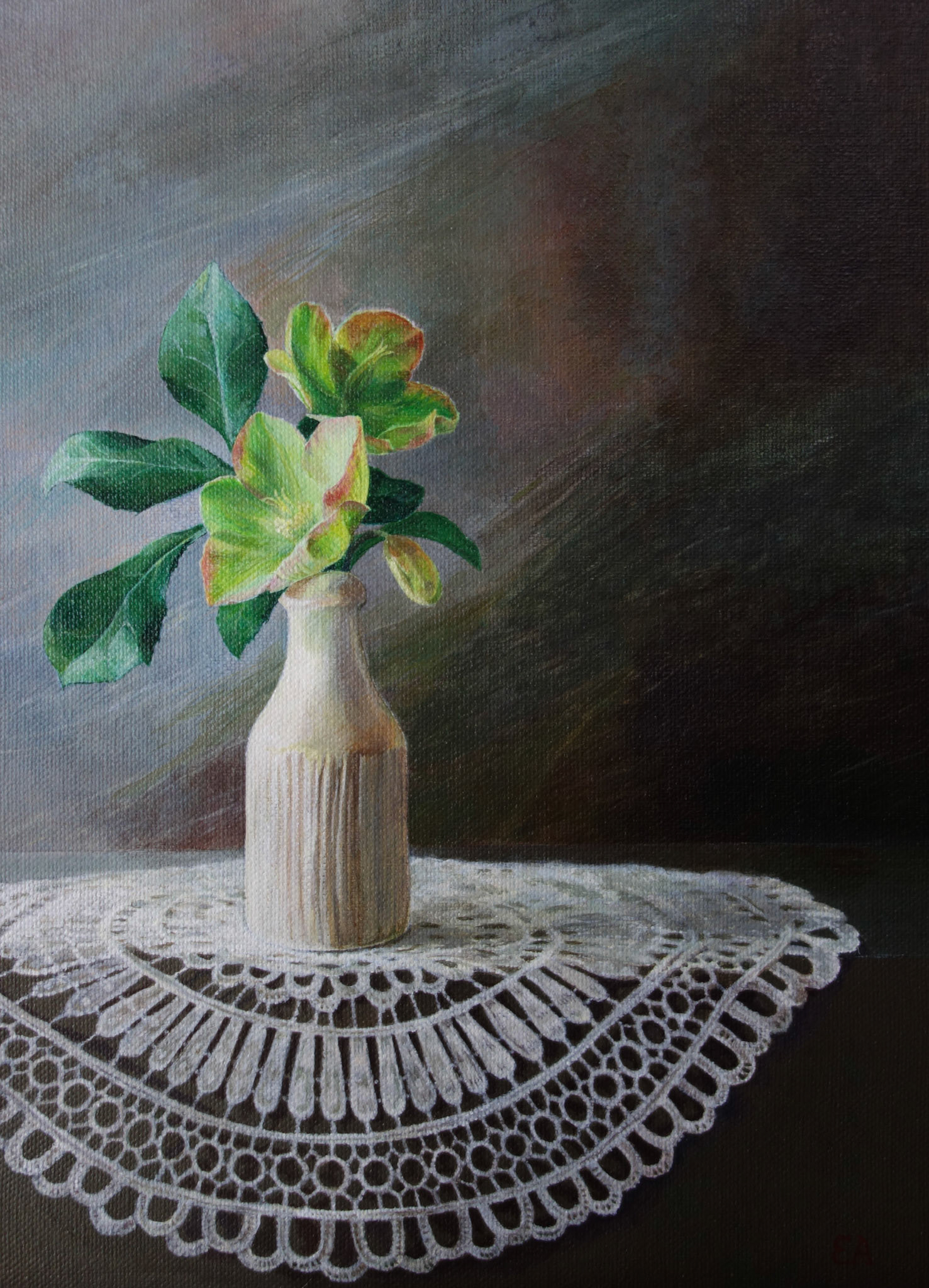 22×27㎝「朝の桜 2025.1-2」油彩・原画・F3
