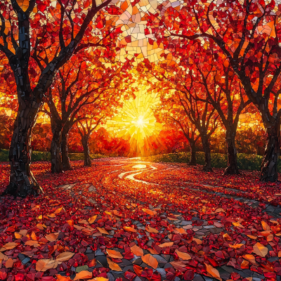 秋の紅葉 - ネオ・モザイック・ステンドグラス