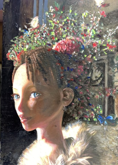 22×27㎝「朝の桜 2025.1-1」油彩・原画・F3