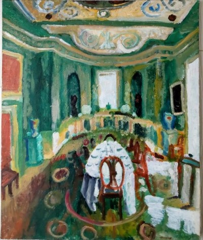 38×46㎝「西洋式テーブルA」F8・原画・油彩