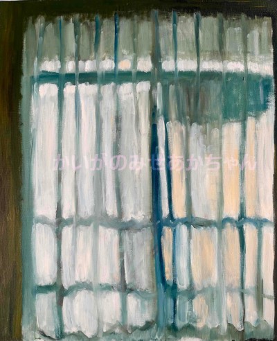 50×61㎝「サッシと洗濯物の影が透けて見えるカーテン」F12・原画・油彩
