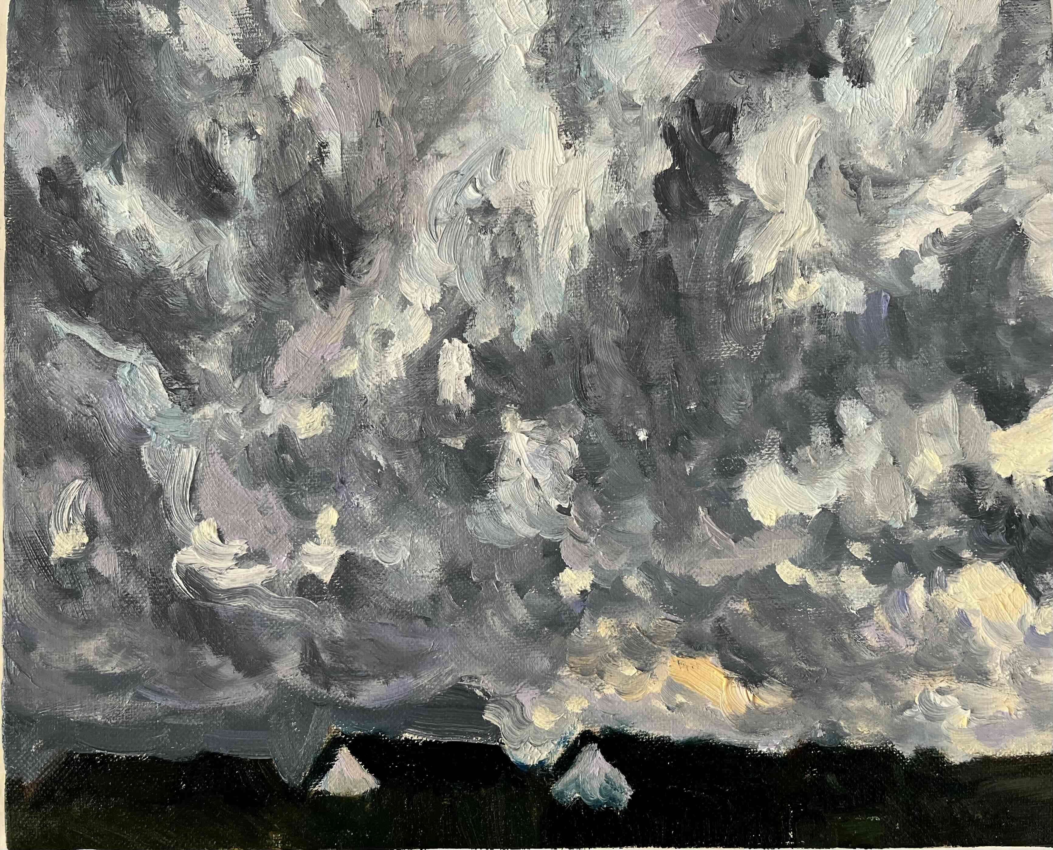 油彩画 原画「近所の風景 空 20262」アート 絵画 22×27㎝ F3 キャンバス