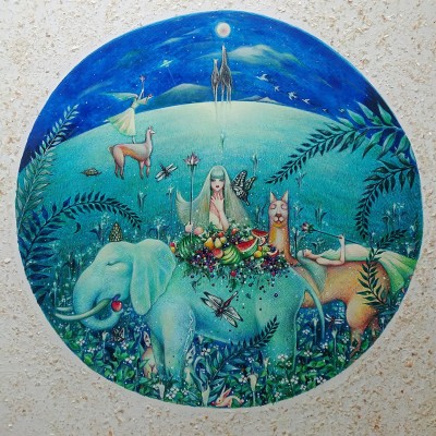 アクリル画、イラストレーションやコラージュと鉛筆画など