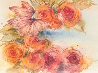 水彩絵の具にしか表せられない、優しい色合い、質感に惹かれ独学で描いています。