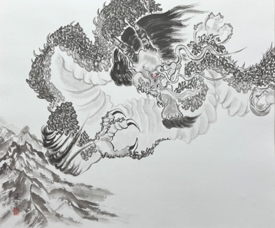書道師範取得後、水墨画に出会いました。当時何故か龍が描きたい衝動に駆られたことを覚えています。その後社会人生活を20年経験した後、やはり水墨画で龍神を描く道に入りたいと考え2022年より本格始動しました。開業の年初めの初夢に美しい富士山を見たことは忘れられません。見えない世界の龍というエネルギーを描くことは、まだ見ぬ誰かの幸せを加勢するものと確信しています。