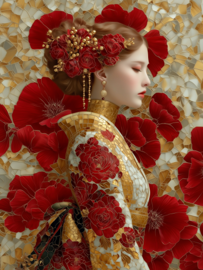 作品名:ネオ・ジャポネクス二連画 – ミュシャのバレンタイン - ネオ・モザイック・ステンドグラス