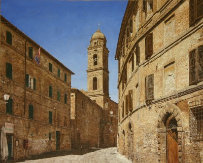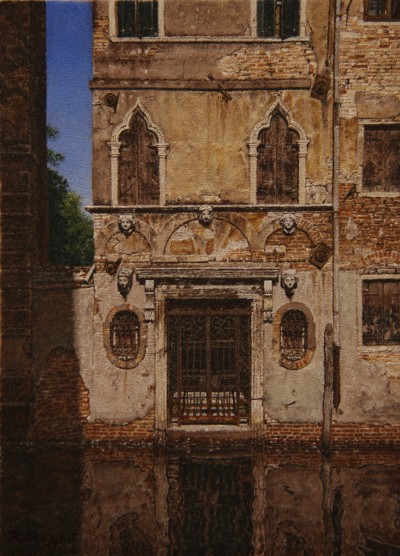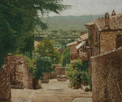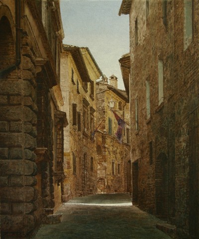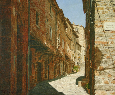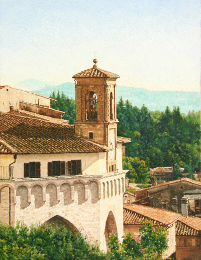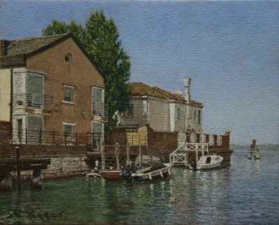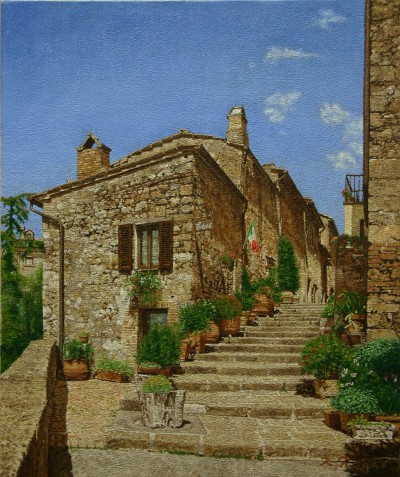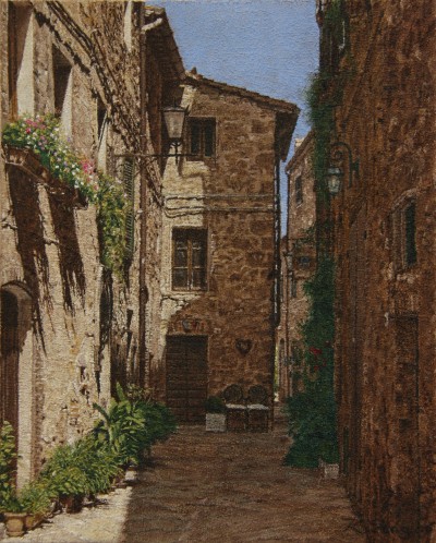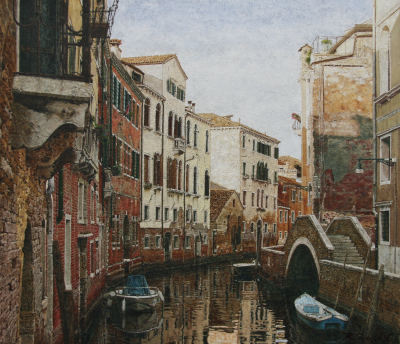 現在は北イタリアの風景を主に描いています。人物画や花々、静物画も描いてきましたが、十数年前にウフィッツィ美術館を目的に訪れたイタリアで、知人が夕食に招いてくれました。そこで見た夕日に染まるアルノ川の美しさに魅了され、風景画も描くようになりました。すこしずつしか進まない日々の制作であったとしても一筆一筆に思いを込めるほか、術を知りません。そんな今日この頃です。