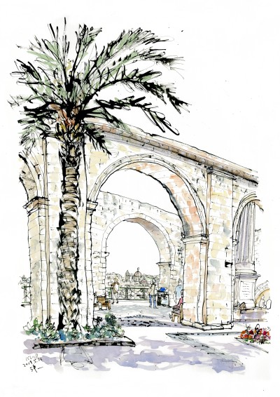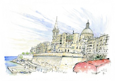 「ピースボート寄港地の風景スケッチシリーズ-マルタ島、バレッタの風景」