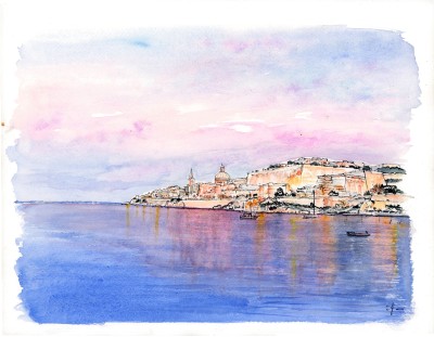 「ピースボート寄港地の風景スケッチシリーズ-マルタ共和国バレッタの夕景」