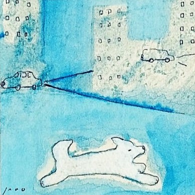 主に水彩絵の具、水性ペンを使用し、滲みを特徴とした叙情的な心象風景を描きます。
