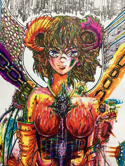 多様性を訴える作品群、アタマフラーズという可愛い動物の絵や、一円玉の10分の1サイズの極小ビルをメインとした、シンギュラリティシリーズという、AIの脅威と、共生への道のりを描いた作品群。サイエンス系の極細密画をメインに描いております。