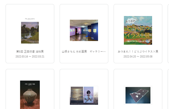 月ごとにテーマを決め、WEB上でグループ展を開催。サイトTOPに掲載されるので認知度向上につながります。