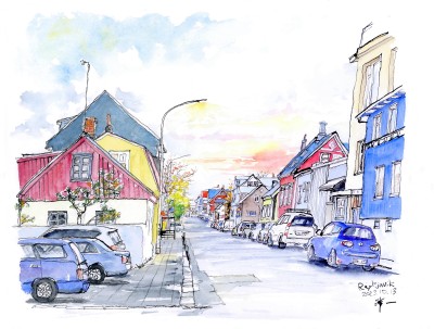 ピースボート寄港地の風景スケッチシリーズ-アイスランド、レイキャビクの住宅地
