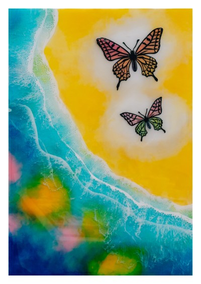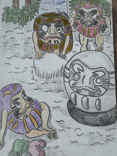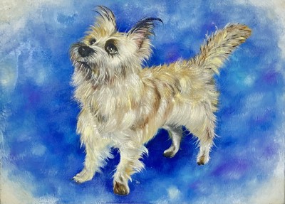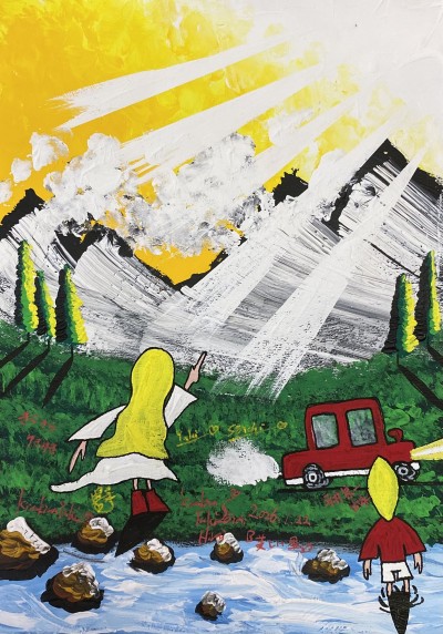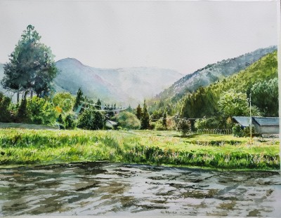 油彩画 原画「民家とジャイアントクラウド」アート 絵画 22×27㎝ F3 キャンバス