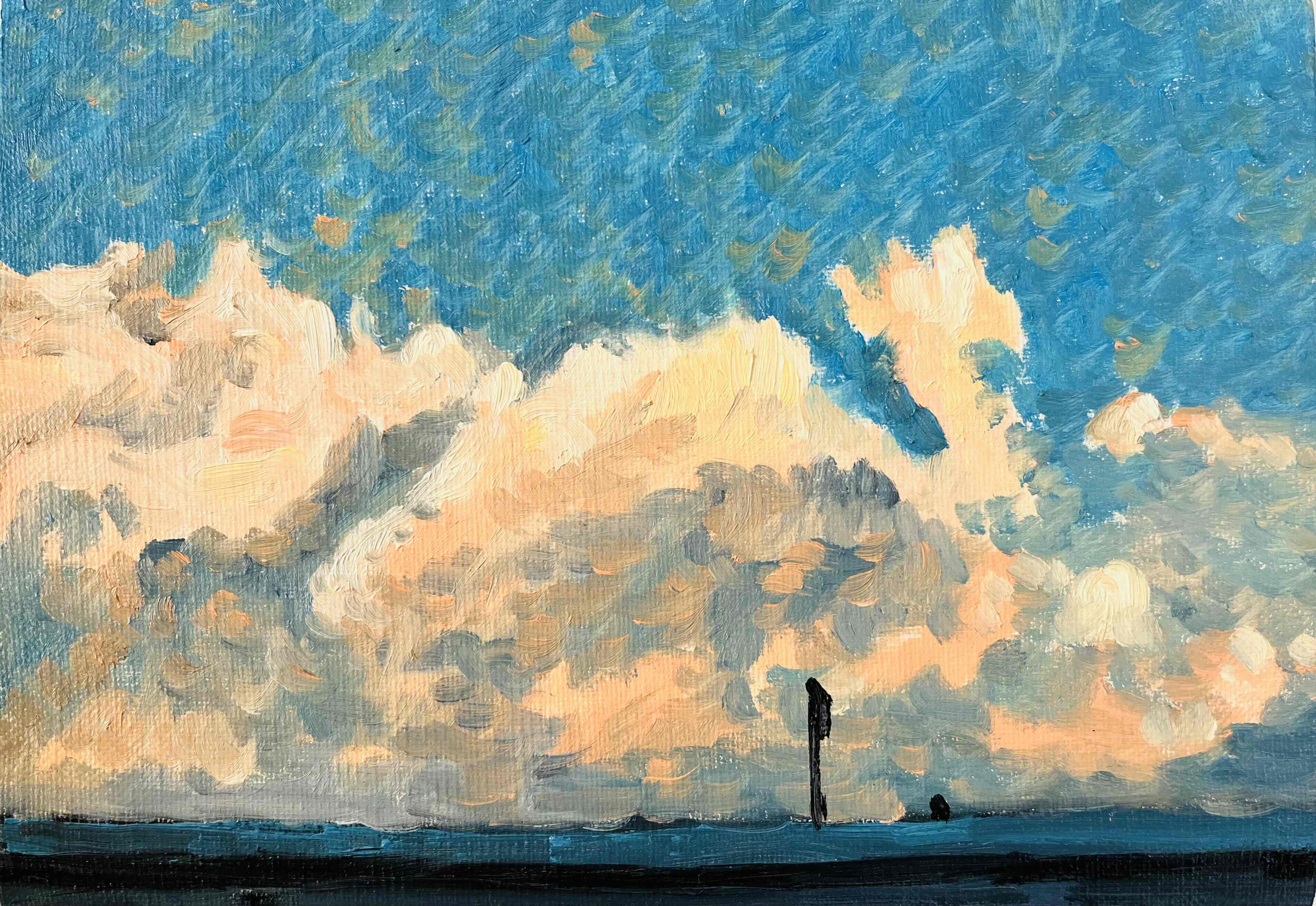 原画 油彩画「近所の風景 高速と空」絵画・サムホールサイズ(16×23㎝)